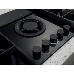 La table dispose de quatre brûleurs puissants, avec deux brûleurs de 3 et 3.2 kW à l’arrière, et deux de 1.75 kW devant. Elle est adaptée pour toutes les tailles de casseroles et divers types de cuisson. Le contrôle de ces brûleurs est assuré par des commandes molette précises. Chaque commande est accompagnée d'un éclairage qui indique le niveau de puissance choisi, ce qui ajoute un aspect visuel attrayant en plus de la fonctionnalité.